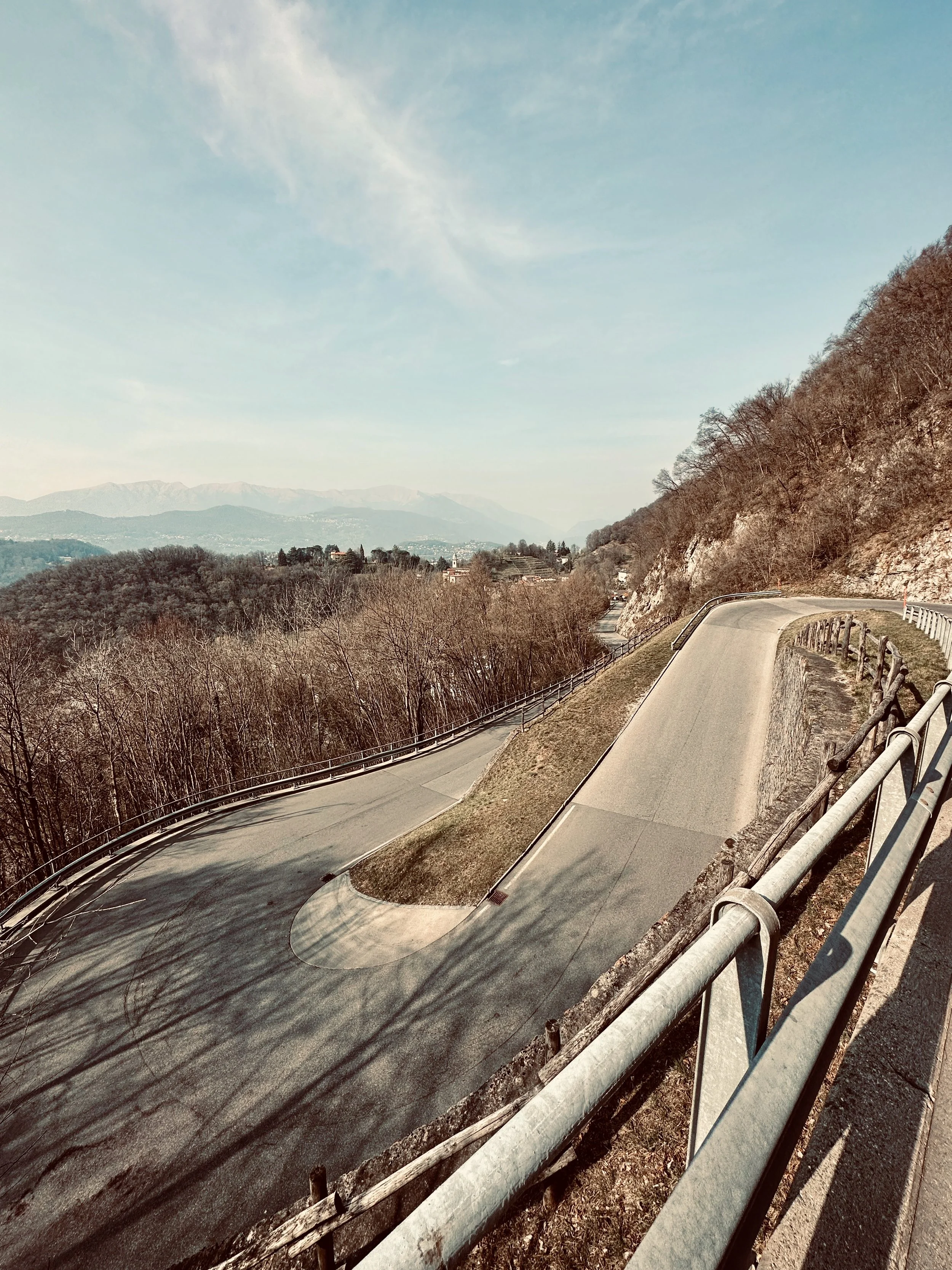 This road cycling route takes you around the west part of the Lugano Lake and it combines some nice lakeside roads and three challenging climbs totalling over 1700m of elevation gain. Is a popular road for weekend cyclist and the roads are not very busy.